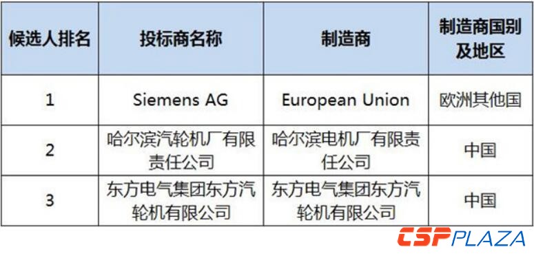 哈爾濱汽輪(lun)機(ji)廠有(you)限(xian)責任公司以及(ji)東方電氣(qi)集團東方汽輪(lun)機(ji)有(you)限(xian)公司分列第二和(he)第三名(具體見下(xia)表)。此評標結(jie)果公示為期(qi)三(san)天,將(jiang)于2017年3月30日公示截止。
