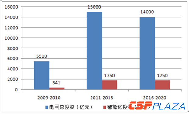電力信息化市場發展迅猛。最近十年,我國電力行業信息化市場規模增長迅速,2015年已達465億元,預計到2018年電力信息化市場規模將突破800億元。依據中國電網發布的相關資料,2016年到2020年,我國電網總投資為14000億元,智能化投資為1750億元。