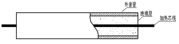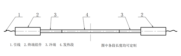 預制冷端鎧裝礦物絕緣加熱線采用冷端引線預埋技術,將發熱段與冷端拉制成一個整體(如下圖所示):
