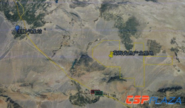 圖:規劃的(de)玉門花海光熱發電基地(黃線區域內)