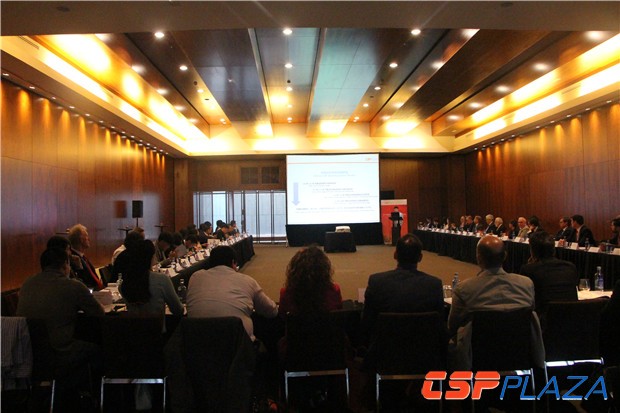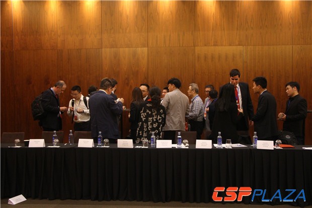 CSPPLAZA代表就“中國光熱發電市場發展與中外合作”進行了主題發言,AEI、IMASA、Abengoa和MottMacdonald分別就西班牙的光熱發電產業及光熱項目的建設案例和經驗進行了分享。在中歐雙方企業對接環節,各參會企業分別就各自企業的簡單情況和對接需求進行了概要介紹。會議從上午9點半開始一直持續到晚上八點左右,中歐雙方的交流欲望強烈,產生了良好的對接互動效果。