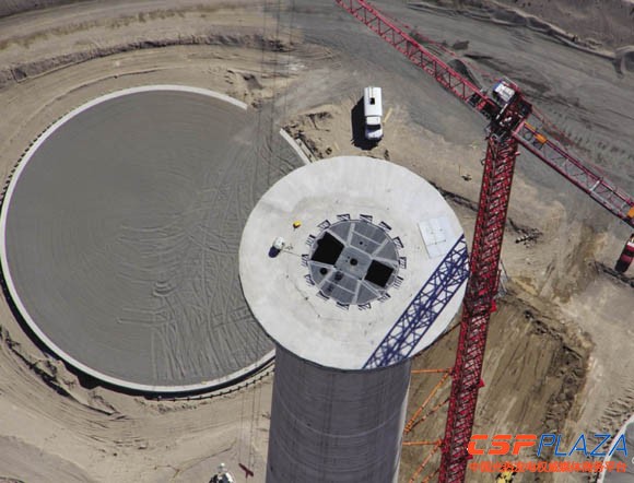 圖:Crescent Dunes正在建設的(de)熔鹽罐(guan)