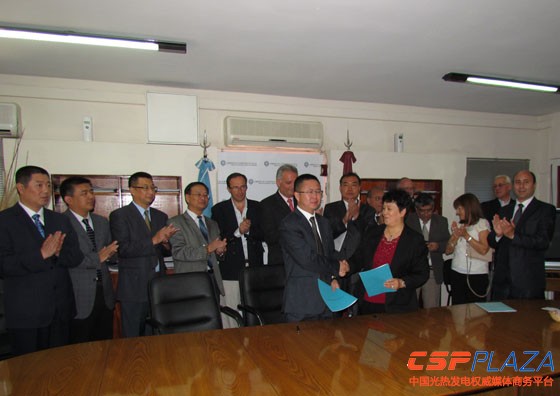 CSPPLAZA光熱發電網訊:據哈爾濱汽輪機廠企業網站消息,10月26日上午9點38分(北京時間22時38分),哈爾濱汽輪機廠副總經理呂智強與黑龍江中京新能源有限公司在阿根廷正式簽訂阿根廷薩爾塔省20MW光熱發電電站總包合同(含技術協議)。