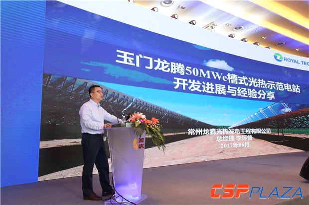 大家下午好。我代表常州龍騰公司,就我們公司槽式50MW光熱項目在玉門開發、進展和所取得的經驗在此給大家做一個匯報。