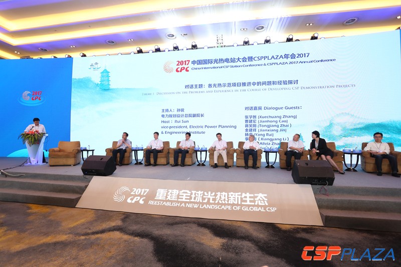 CSPPLAZA光熱發電網訊:6月14日下午,在浙江杭州召開的第四屆中國國際光熱電站大會暨CSPPLAZA年會2017(CPC2017)上,就各光熱示范項目推進中的問題和經驗探討這一主題,各地方政府官員和光熱示范項目開發商代表進行了一場小組對話,電力規劃設計總院副院長孫銳主持本輪對話。