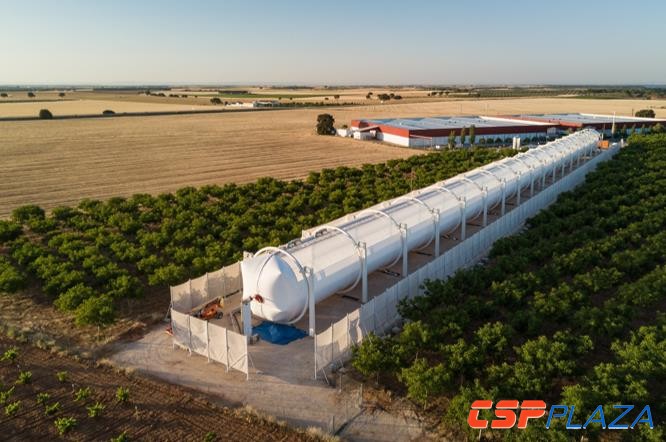 CSPPLAZA光熱發電網訊:近日,奧地利HELIOVIS以某種特制的塑料薄膜為原材料,成功研發出的全新的HELIOtube集熱器順利在西班牙完成首次工業化試運行。采用該技術的這一示范項目設有一套長220米,直徑 9米的太陽能光熱集熱裝置,其集熱面積約1600平方米(寬8米,長200米),裝機1MWth。
