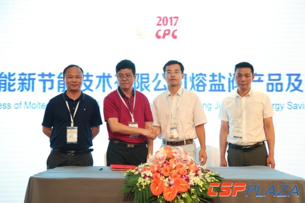 在中國國際光熱電站大會暨CSPPLAZA年會2017(CPC2017)期間,北京佳潔能舉辦了熔鹽閥產品發布會,并與中國科學院上海應用物理研究所簽約。在發布會現場,北京佳潔能董事長陳金環強調了熔鹽閥的特點和對整個系統的影響,“作為儲熱系統關鍵設備的熔鹽閥,按照通用閥門的溫度壓力等級來選擇熔鹽閥的結構、材料是遠遠不夠的,本來國內對高溫熔鹽的特性了解就比較少,尤其是閥門廠對熔鹽的了解就更少了,憑理論來設計,其后果會給整個儲能系統乃至整個項目運行帶來巨大安全隱患和不可估量的損失。”