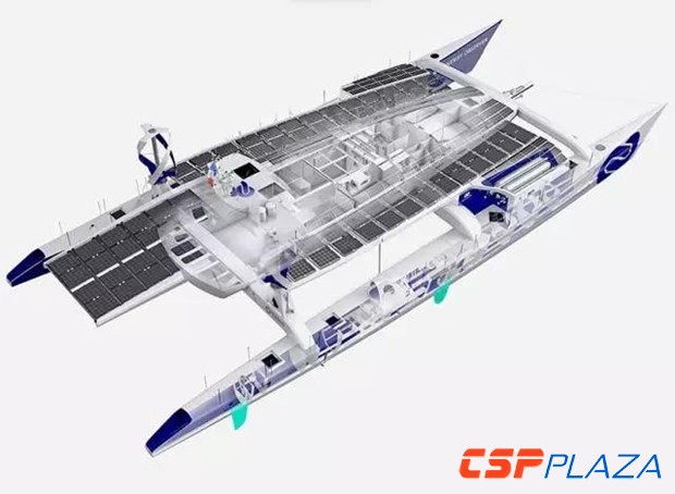 據介紹,"能源觀察者"號使用太陽能、風能和氫能作為混合動力。航行中,它主要依靠太陽能驅動電動馬達,在太陽能和風能不充足的時候,它則將海水中的水分子分解成氫燃料,實現溫室氣體零排放的目標。