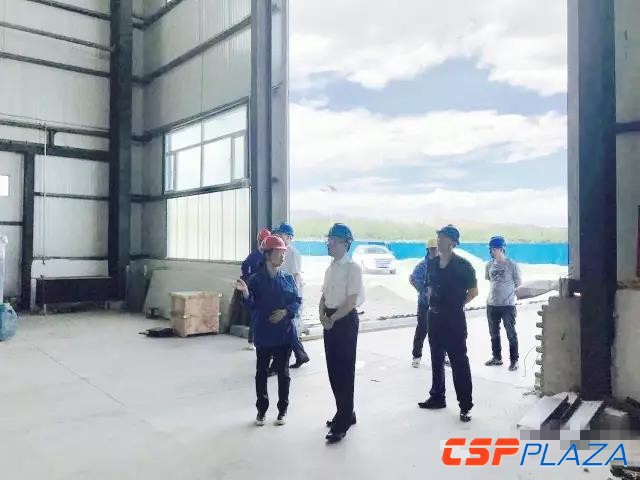 青海愛能森總經理徐慧芬陪同領導參觀基地,并向領導就熔鹽基地項目建設規劃和進度做了詳細匯報。