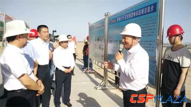 唐仁健省長一行觀摩了位于敦煌七里鎮的蘭州大成敦煌50MW光熱發電示范項目,公司董事長范多旺向觀摩督查組匯報了項目的建設進展。目前蘭州大成敦煌50MW項目正在按照計劃全力推進,計劃2018年10月建成并網發電。